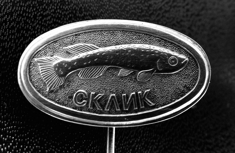 трёхдневный малек ~5-6 мм, значек 30х15 мм, фрагменты пятигривневой купюры.