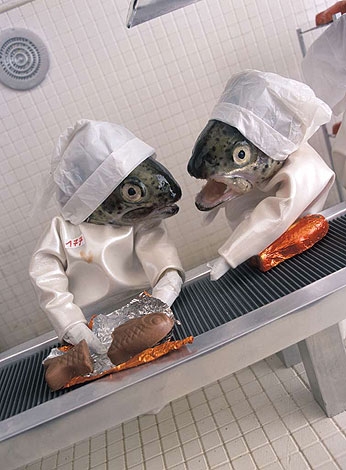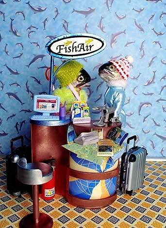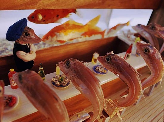 Французский дизайнер-модельер Анни-Катерин Беккер-Эшивард работает с весьма специфичными моделями. Она создает “живые” сцены, используя головы рыб, усаженные на кукольные тела, причем рыба в основном сардины или макрель, купленная на продовольственном рынке Rungis в Париже. Работа над каждой сценой может занять до трех месяцев, но Катерин считает что проводит время с пользой, потому что каждая ее новая идея начинается с какой-то социальной новости, услышанной по телевизору или прочитанной в газете.