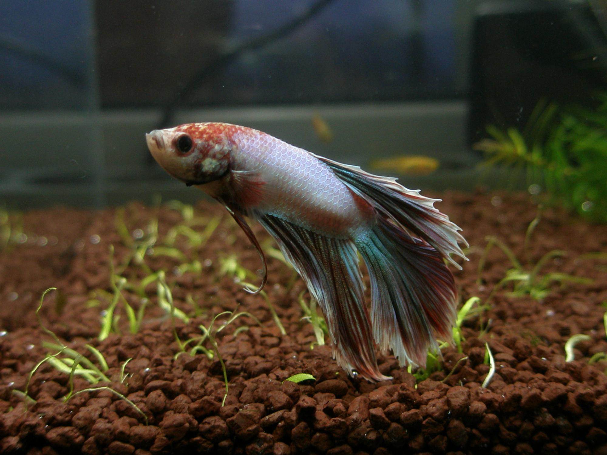 у меня 1 камбожда (белая с красными плавниками, как в прошлый раз) и 1 черная с зеленым оттенком