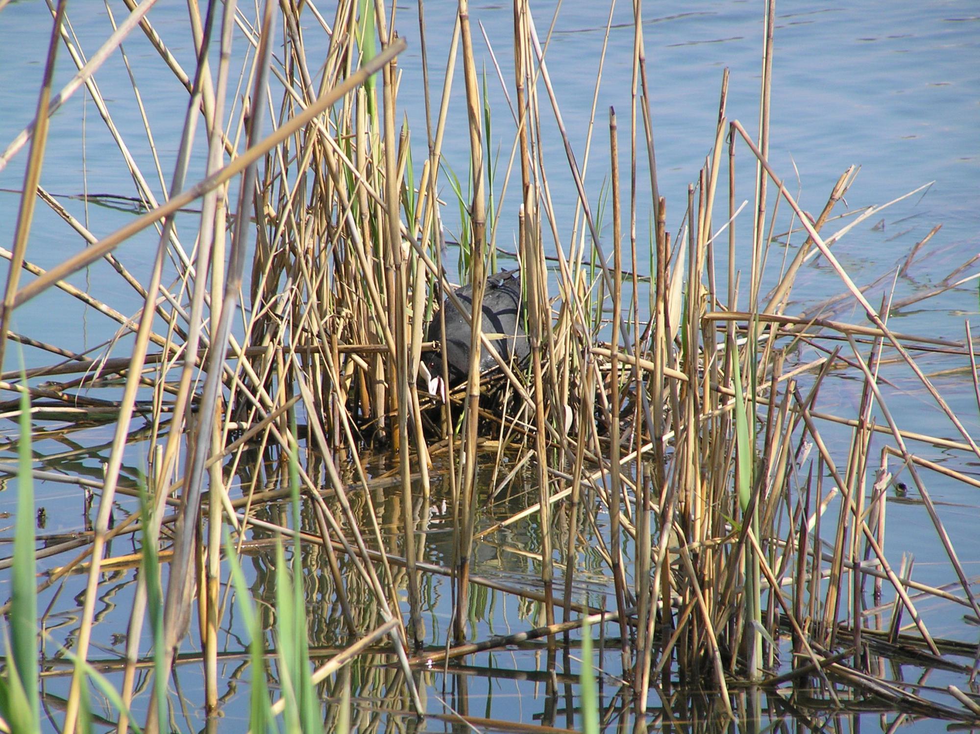 Я, вроде, не слепой, но такого снимка не вижу. Ни гадюки, ни ужа. ни змеи вообще. Только ондатра, птицы и растения.