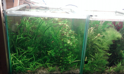 Фото аквариума на 200 л прилагаются. 130х30х50 см. 10 мм стекло. Ребра жесткости и стяжки. Свет - 2 Т5 по 54 ватта. На фото крышка стоит на подпорках из за жары, если подпорки убрать - смотрится аккуратнее. Грунт - красный кварц, мелкий. Растения разные, фильтр - атман с губкой. Есть внешник тетра-ех 700. Цена - 3000 грн.