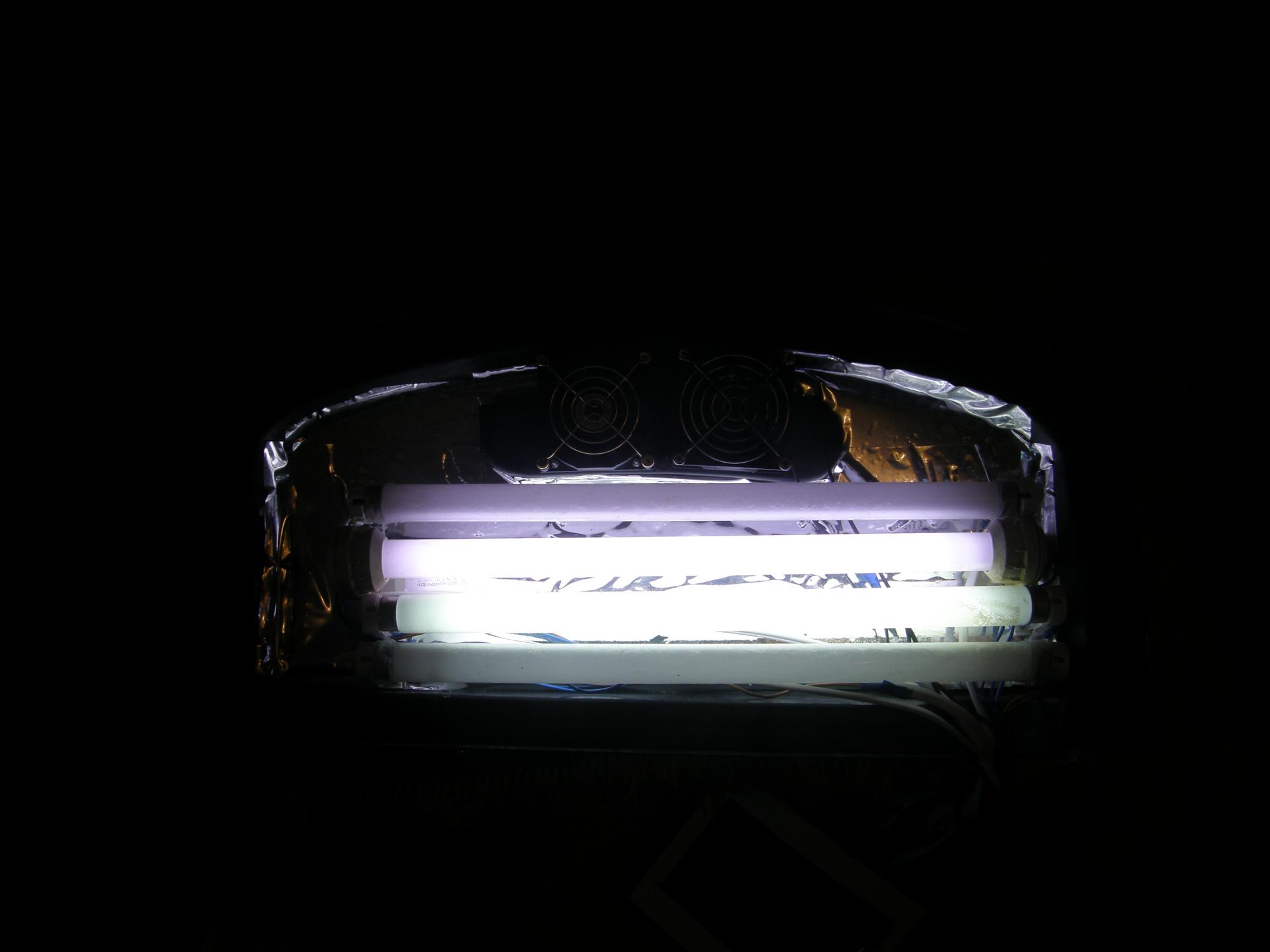 Лампы подключены по парно, что позволяет моделировать "рассвет-закат" с помощью таймеров, также к первым двум лампам (что включаются первыми) подключен один кулер, то есть работает он когда включен свет (второй кулер работает 24 часа)