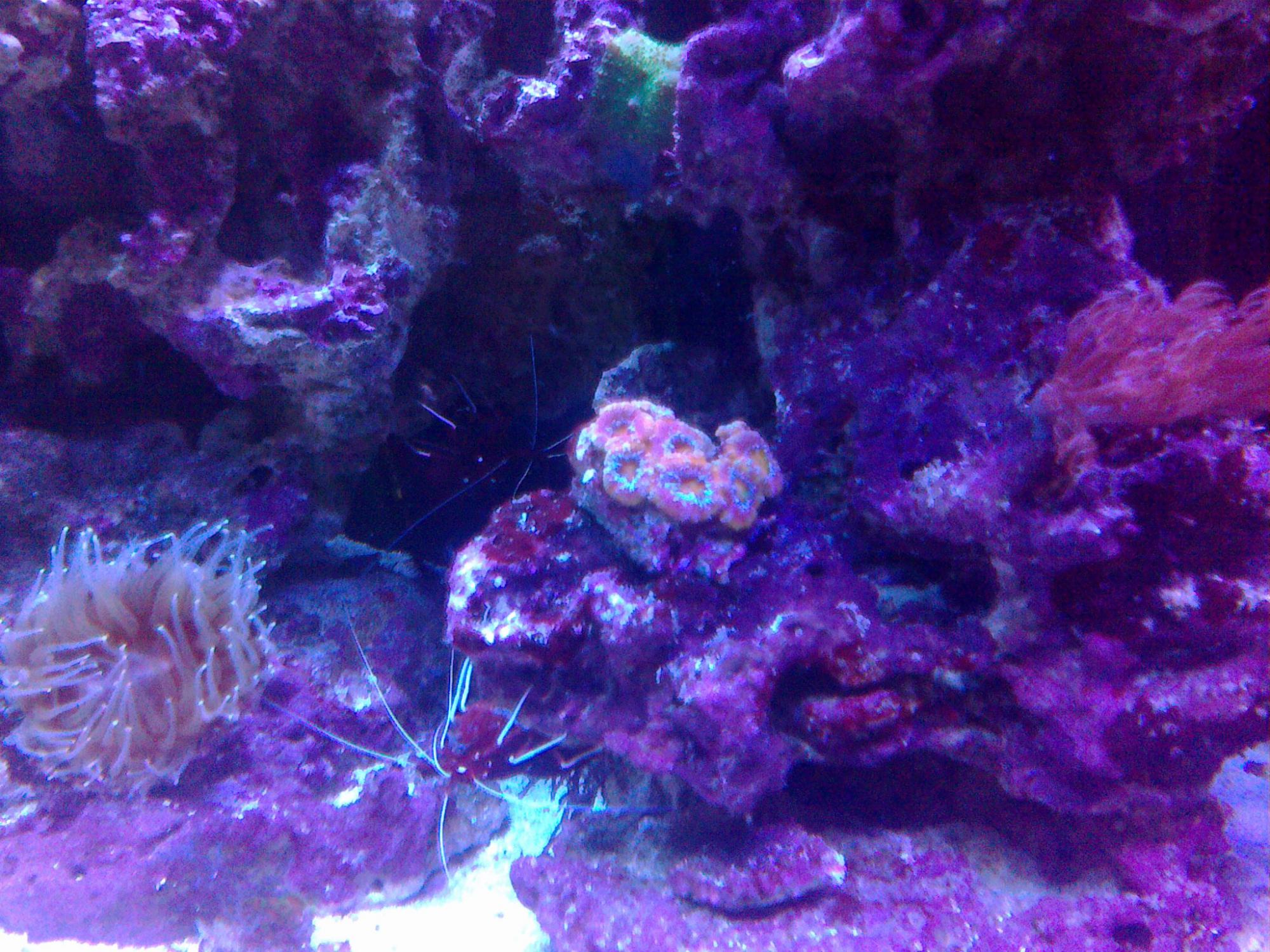 Другие акантестреи, которые не участвовали в эксперименте, и, при покупке были гораздо ярче, растут гораздо быстрее под МГ, получая те же гранулы. Правда, уже нет таких насыщеных и контрастных цветов. Чисто под люминисцентными (актиннки плюс белые), они гораздо интереснее. Пока не получается совместить и максимальный цвет и максимальный рост. Посмотрим, что ЛЭДы скажут.