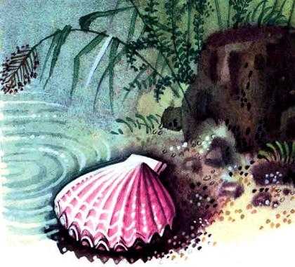 Бедному юноше ракушка очень понравилась. Он поднял ее и взял с собой, а дома положил ее в широкий горшок с водой.