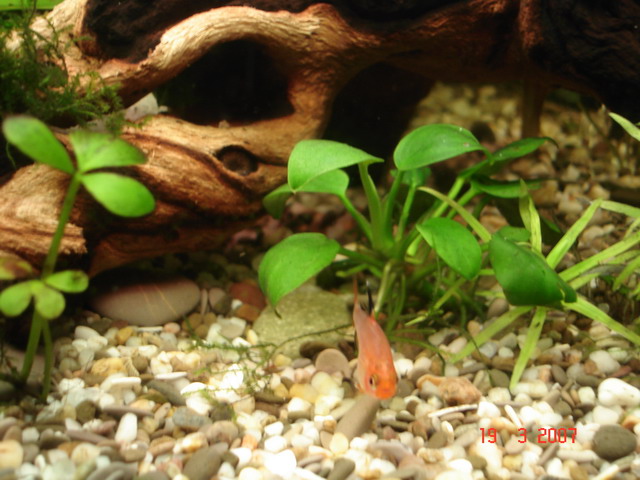 на четвертой фотке есть растение (справа) на переднем плане, светло зеленое, так вот, что то вянет травка, не пойму почему. Может тест воды сделат? Фильтр работает 12 часов в сутки, свет - 12, мелании в грунте размножаются. Не пойму...