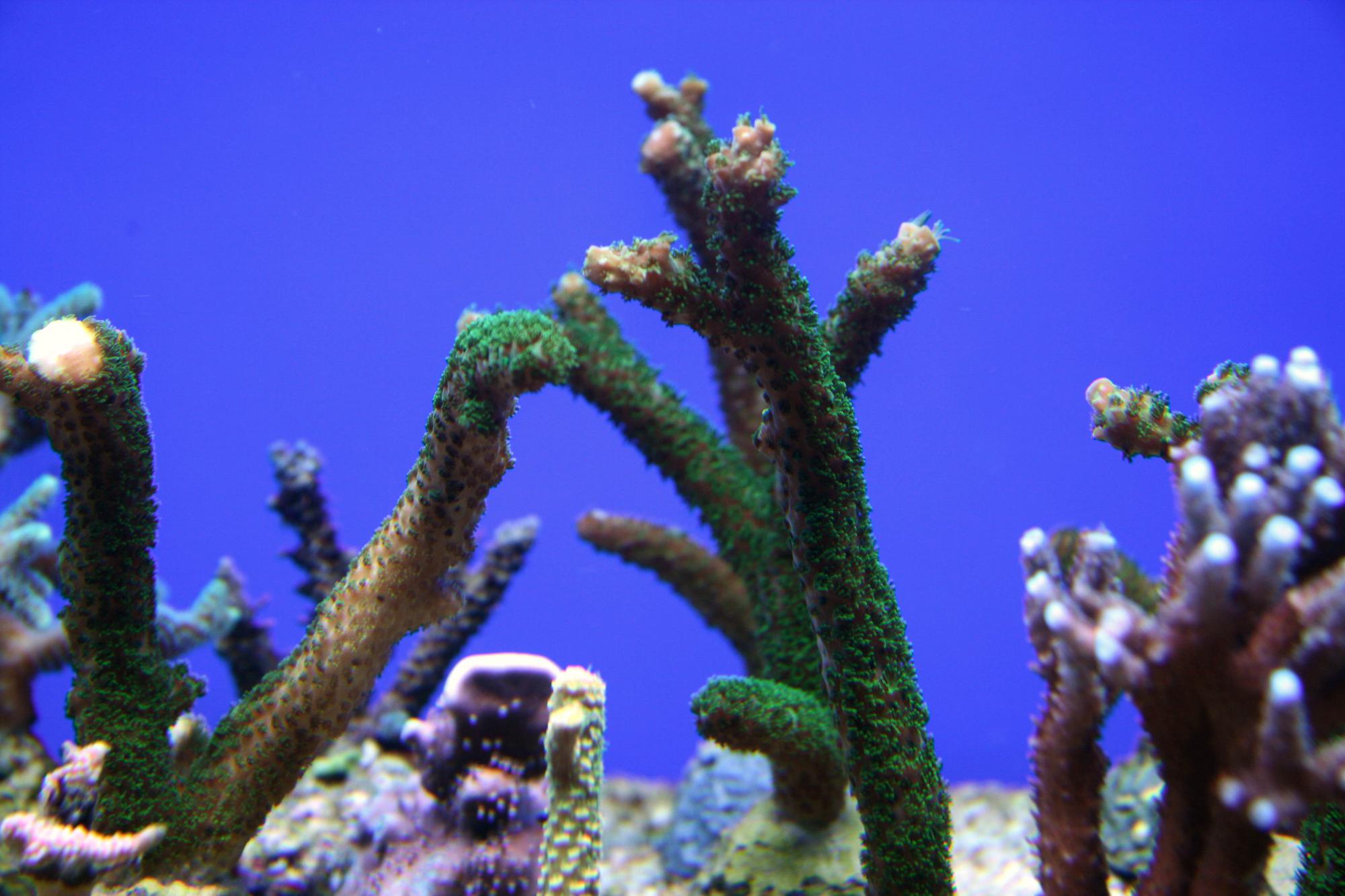 4) ну и то что получится откусить от акропора-рога - основной цвет коричневый с голубыми концами и зелеными прожилками.
