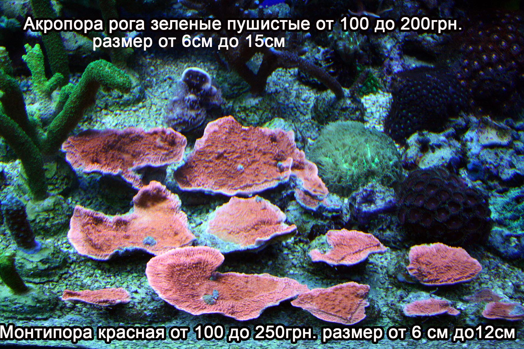 Акропора-рога зеленые 100-200грн.( размер 5-15см)