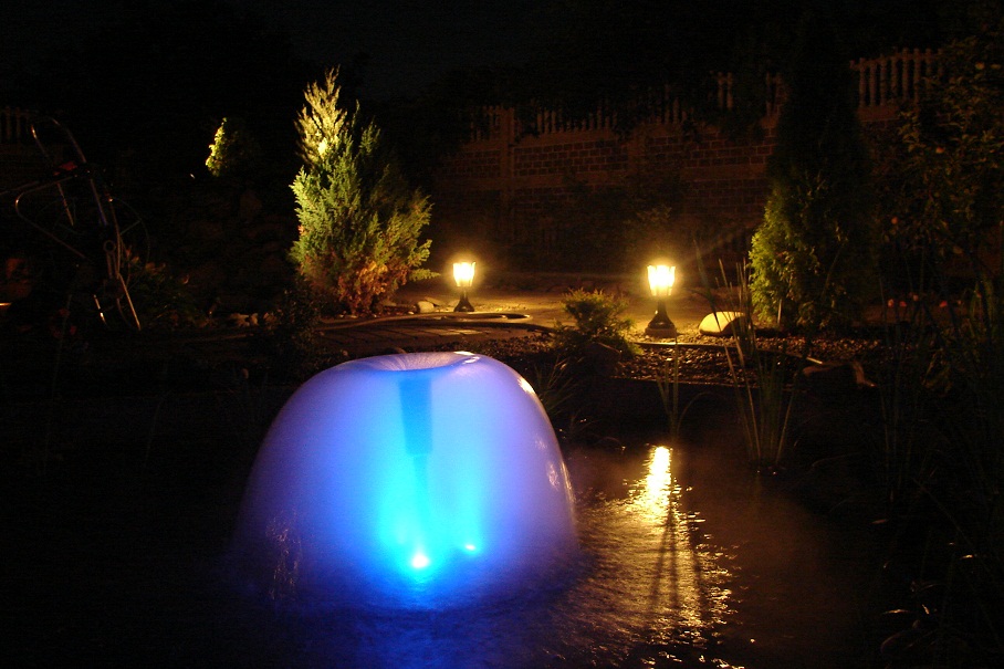 Вы правильно заметили-двух ламп наверняка будет маловато,но тогда рядом поставлю еще две))Пленка с посыпкой Gardena или oase безумно дорого для такого изделия.Можно смело наклеивать на крашенный геотекстиль мелкую фракцию камня.Эффект одинаковый.