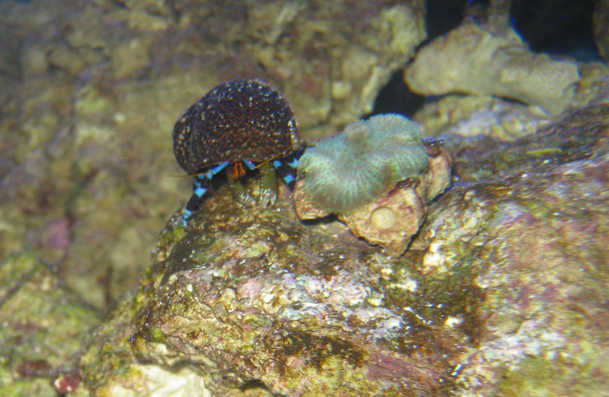 В воскресенье появились новые жители Отшельник вовсю полирует камни,а креветка вылазит из камней только поесть и по ночам  Сегодня утром обнаружил у одного оцеляриса,пощипанные плавники.Начали сильно драться(видно с голодухи),после очередной трепки(хватает за плавник так,что бедняга не может вырваться секунд 10),мое сердце не выдержало и начался ужин  Вот какое пузо(щипанное  )