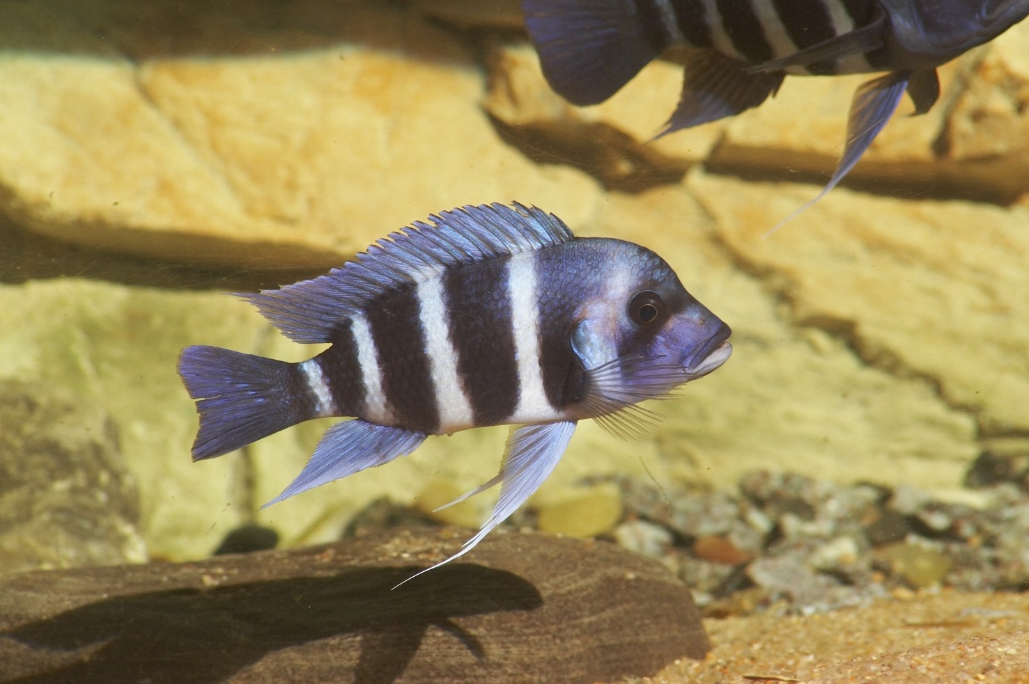 Сегодня солнце на пол-часа заглянуло в аквариум , думал что рыбы начнут прятатся по углам избегая яркого света , но на удивление они не прятались , и занимались обычными делами , перекапыванием песка в поисках пищи , разборками между собой у кого плавники длиннее и толще и т.п...