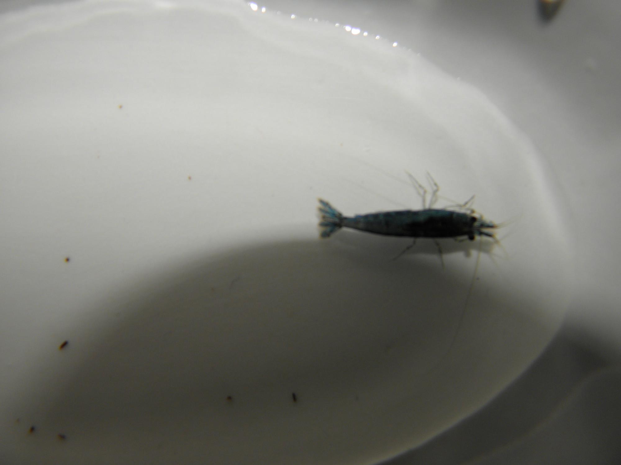 из голубых креветок у нас как правило 2 вида: этот, что я указала и еще Каридина голубая пчела, у последней есть белые полосы и она крупнее.