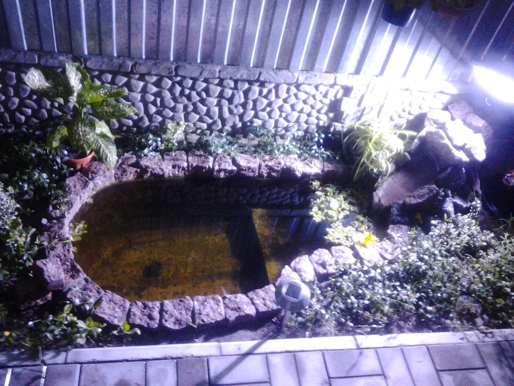 Водичка журчала круглосуточно, поверхности бассейна покрылись буроватым налетом, водичка все лето была прозрачной. Камыш не прижился - начали гнить стебли, осот стоял до самого конца (спуска) зеленый, но лист суховат (красиво дополнял интерьер). Месяца три жила золотая рыбка - сейчас в 10л банке зимует. Сверху на зеркало накидал пистии - красота. Пробовал вырастить фиолетовый лотос, но листы доросли до верху и отгнили у основания (а может прудовики отгрызли), повторим эксперимент весной.