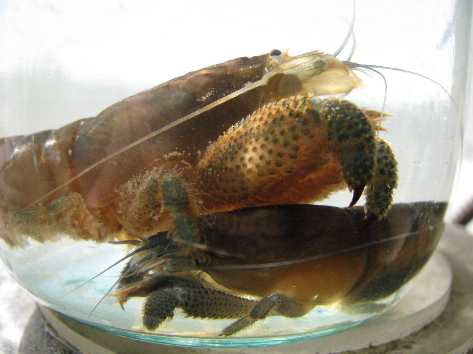Неделю назад заметила самку с икрой, усердно фильтрующую яйцеклад.