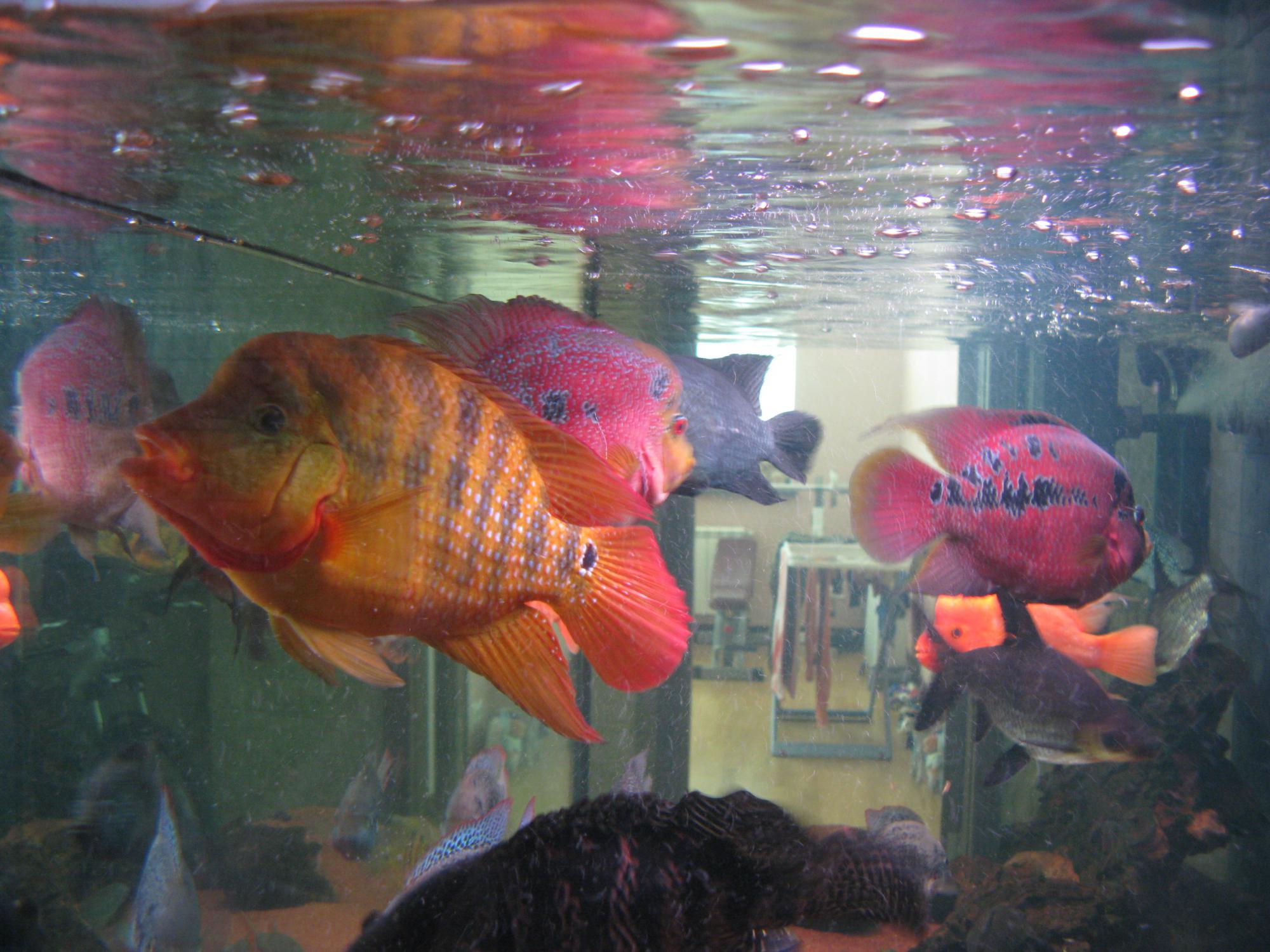 Не все рыбы вышли попозировать, температура в аквариуме 34 градуса.