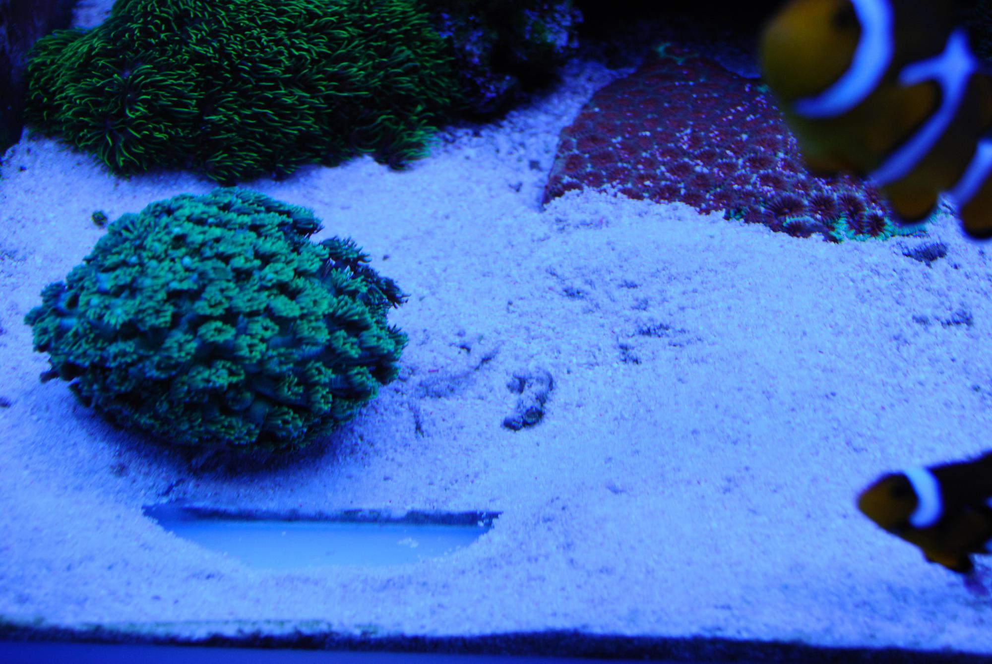 у меня так это происходит-у меня есть гониопора в которую они иногда ложаться,естественно она закрывается сразу.и когда она закрывается,они начинают ложиться в песок рядом с ней при этом активно дергаясь.сейчас сниму результат их работы.еще рядом фавию часто засыпают
