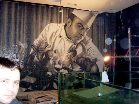Фото 6,7. Первый в Украине цилиндрический аквариум 12т из стекла, 2005г.
