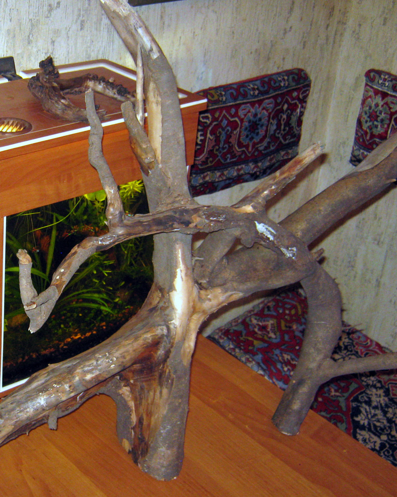 У меня сейчас в большом аквариуме три коряги. Просто вымачивались, не кипятились..Два месяца стоят.  Орех.