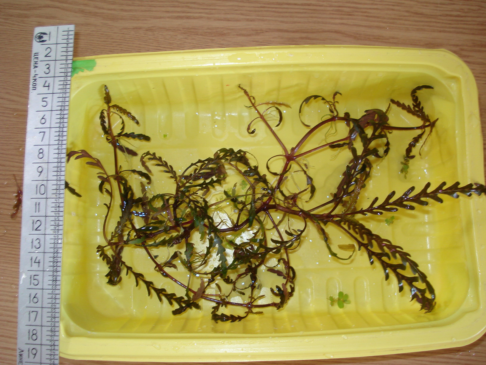 Лот: куст гигрофилы перистонадрезанной (Hygrophila pinnatifida). Это неприхотливое растение переднего-среднего плана. Выращено в аквариуме 180 л с такими условиями: свет 0,65 Вт/л, грунт 2-4 мм без питательной подложки, вода из водопровода (кН=9, gH=14-16), еженедельно после подмены добавляю удобрения Микроэлементы и Железо, работает бродилка.