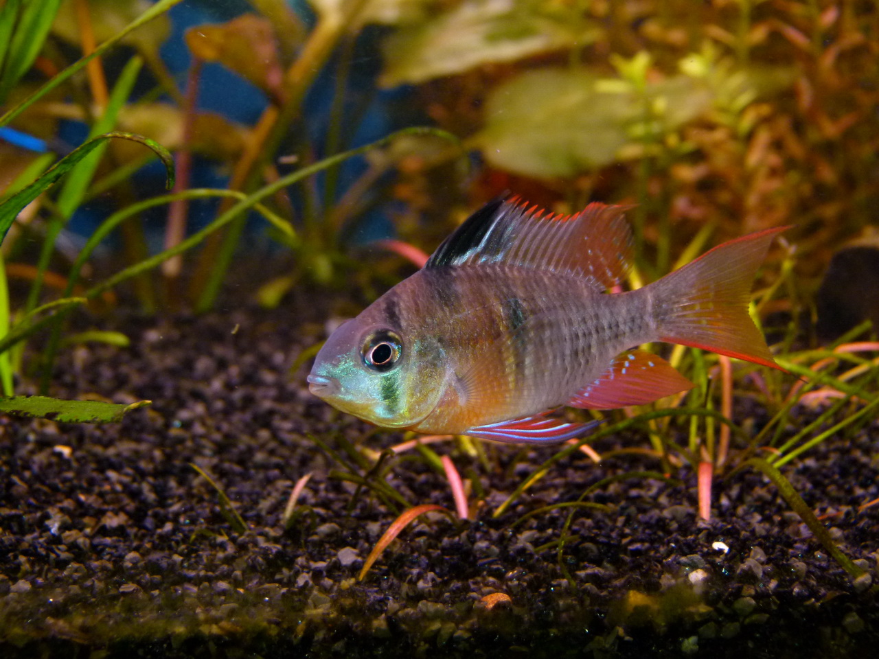 Все таки не удержался и в который раз купил сегодня гарем из трех штук апистограмма рамирези.Хоть убей ,все остальные апистограммы приживаются,а рамирези ни в какую.