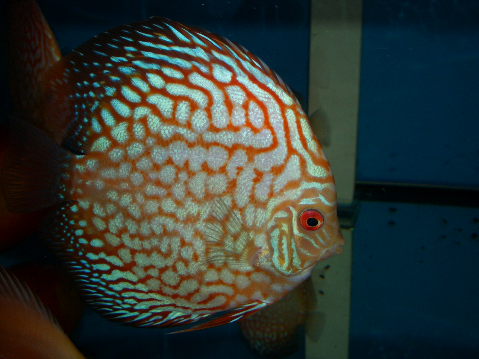 Не буду врать от какого разводчика я так и не понял . Заказывалась как супер эрапшен но выросла простым эрапшеном, рыба приехала из-за бугра в феврале или марте этого года в размере 4.5-5см , прошла курс лечения и карантин пол года в отдельном помещении , сейчас уже два месяца как плавает в моем хоз-ве . Отбилось еще две пары и высадились в нерестовики , надеюсь результаты тоже будут положительными