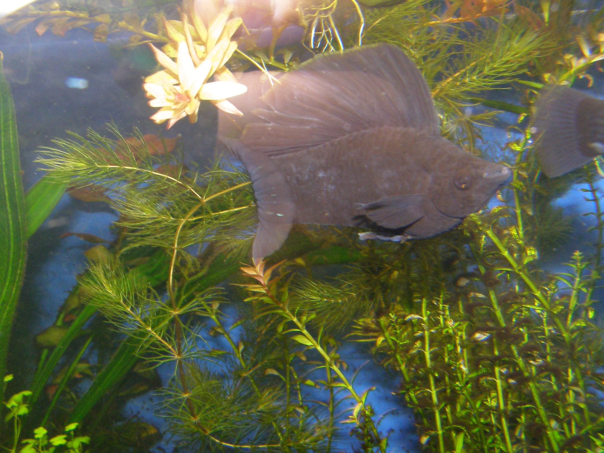 Мне нравится динамика  Не забывайте, что это полностью половозрелая рыба, которая уже давала и дает малька . Объедает обрастания с растений, не хуже хваленых водорослеедв.