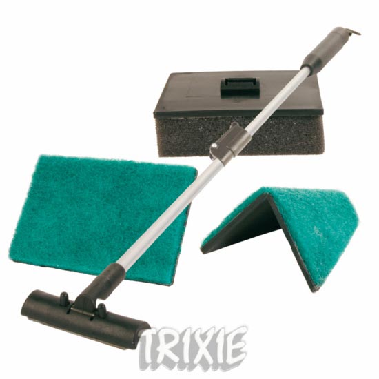 Магниты часто царапают стекло, когда между магнитом и стеклом попадет грунт или песок. Рекомендую многофункциональный скребок с 4-мя сменными насадками. Там и лезвие, для сильно заросшего аквариума, и два вида мочалок (мягкая и жесткая) и специальная насадка для чистки углов. Такой скребок есть в продаже у нас в магазине.