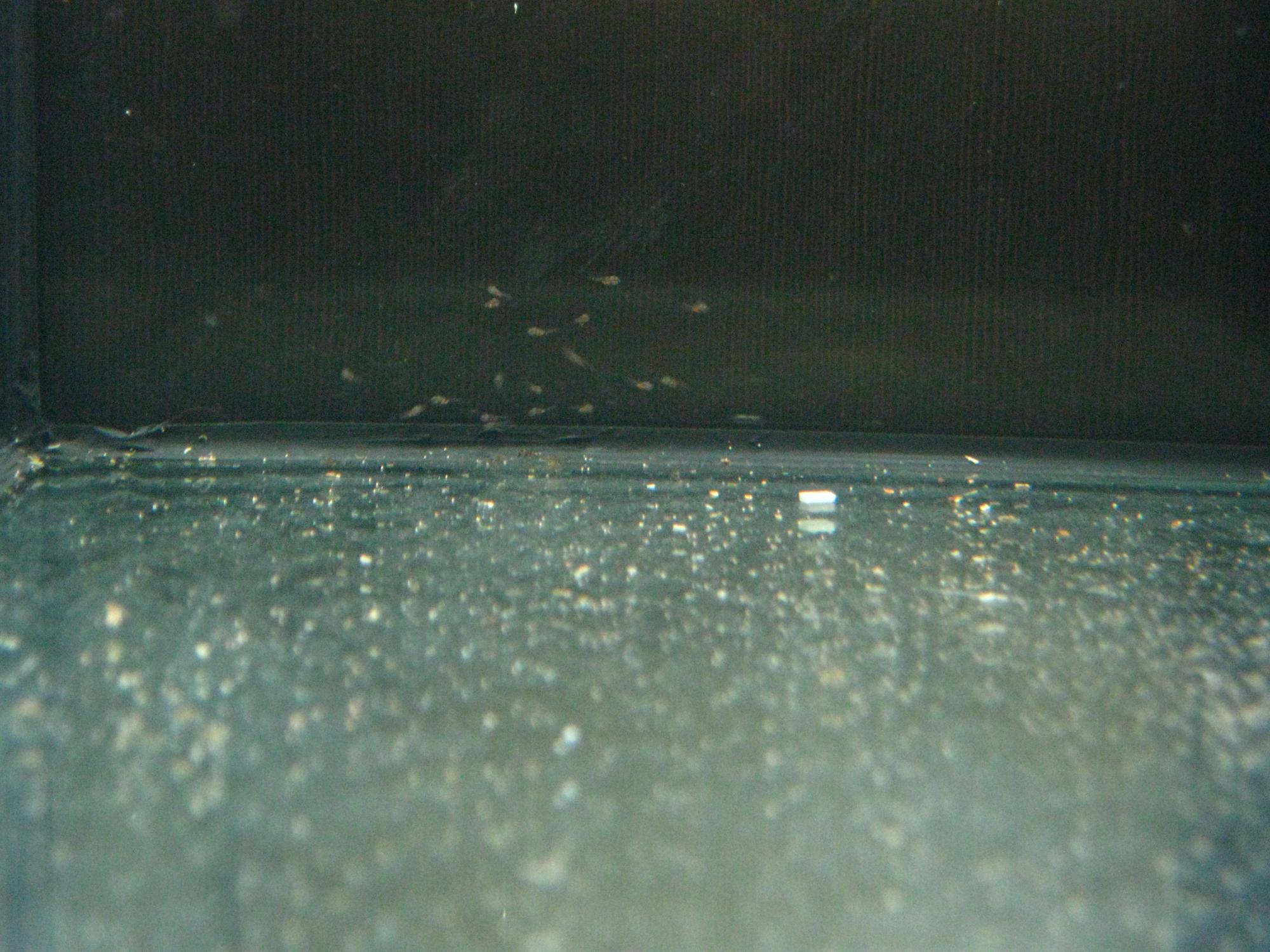 начал кормить науплиями артемии - поплыли сегодня.... к 11-00 началось движение малька...а как подкинул науплий-оживились...едят ли - точно сказать не могу(под корчём темно) ...