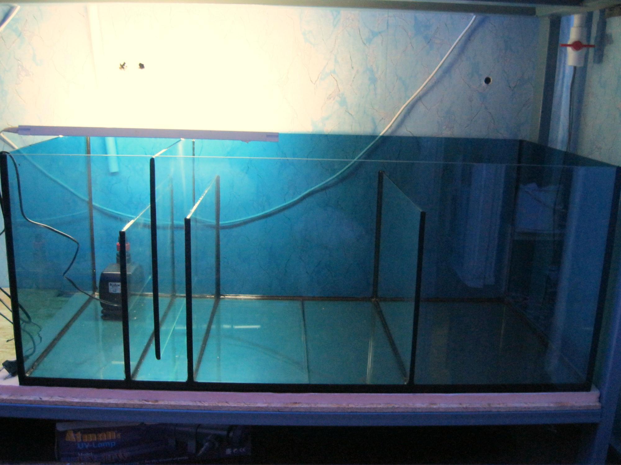 и у меня самп из 6-ки, правда размерами в 2 раза меньше, и перегородки из 6-ки (стекло, нарезка, полировка(или шлифовка - что дешевле?) одной грани) - стоило 45гривен (2перегородки, 2ребра, два кусочка стекла(думал под пенник, но поставил другой))