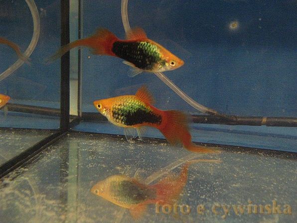 Кроме форм плавников меченосцы и пецилии имеют еще много признаков по которым ведется разведение и создание новых пород и линий , а так же относится рыба в ту или иную группу/породу/ , имеющих схожие признаки. Попробуем разобраться с фоновым цветом тела /не путать с рисунками которые могут присутствовать на разных фоновых/. Рисунки - это отдельная тема. Фоновые цвета тела - "ДИКИЙ" ГОМОЗИГОТНЫЙ/серый-пецилии , зеленый-мечи/ >>>> БЛЕДНО-КРАСНЫЙ/смешанная наследственность , красно-серый/ >>>> КРАСНЫЙ ГОМОЗИГОТНЫЙ >>>> ОРАНЖЕВЫЙ / смешанная наследственность , красно-желтый/ >>>> ЖЕЛТЫЙ ГОМОЗИГОТНЫЙ >>>> СВЕТЛО ЖЕЛТЫЙ /смешанная наследственность , желто-белый/ >>>> БЕЛЫЙ ГОМОЗИГОТНЫЙ. Дикий цвет доменирует над другими . Все - доминируют над белым. Оранжевые особи обычно окрашены одновременно и в желтый и в красный цвет и благодаря комбинации пигментов и фонового желтого получается оранжевый. Вариация "мэриголд"/цвет календулы/ - желтая фоновая с красным хвостовым стеблем и плавником. Лучше всего определять фоновую у молодых рыб.