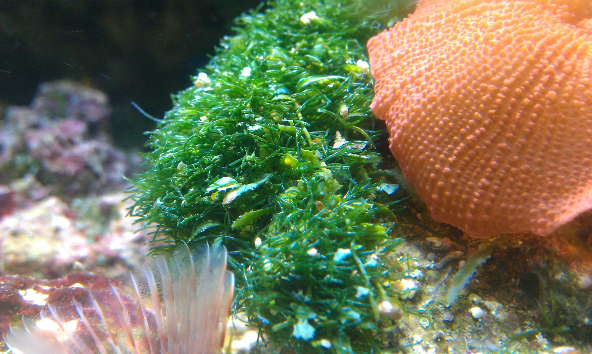 Дербесия......Трудно с ней бороться,у меня до появления хирургов благоденствовала в рифе.Посадил хирургов,даже воспоминания не осталось.Несмотря на ее жесткость.Правда нужно несколько видов этих рыб.ИМХО,не каждый может с ней быстро разобраться.