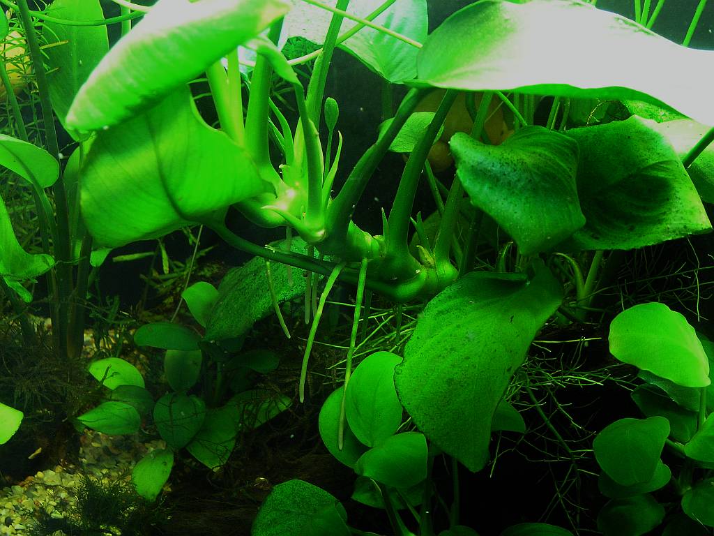 Закинул Роголистник чтобы ускорить баланс. Анубиасы, как растения для запуска, не очень подходят из-за медлительности, Роголистник же - быстрорастущее растение, которое к тому же питается из воды. Есть Риччия, но перемешается с Роголистником и для нее уже места нет. :-)