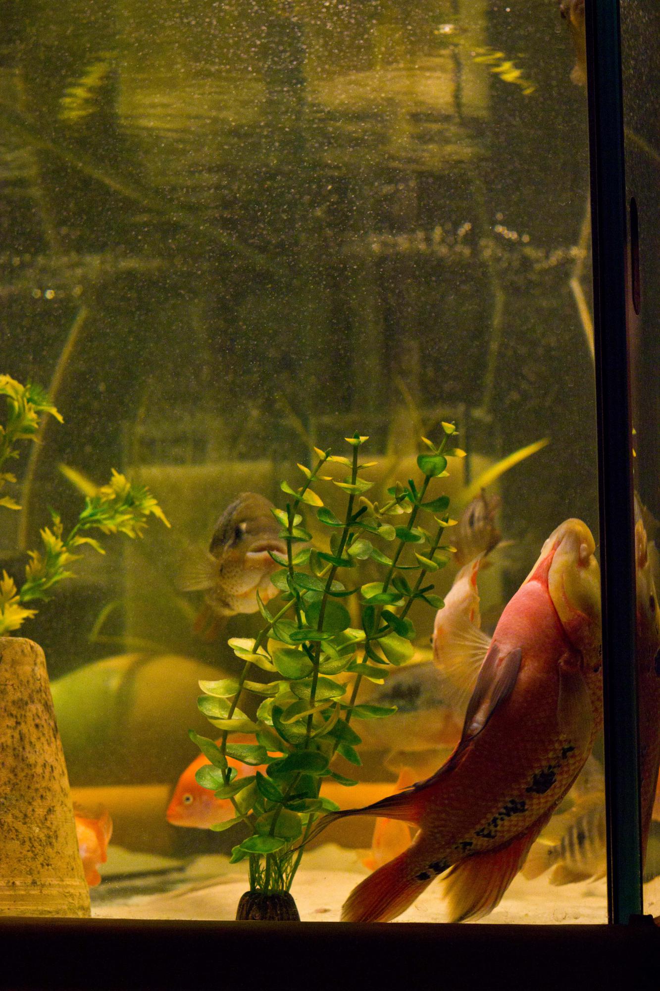Маленький плавает в общаке с грунтом, всегда роется, наверное ему интересно, а большой хорн без грунта и практически сидит на месте.(возможно привыкает к новой банке)
