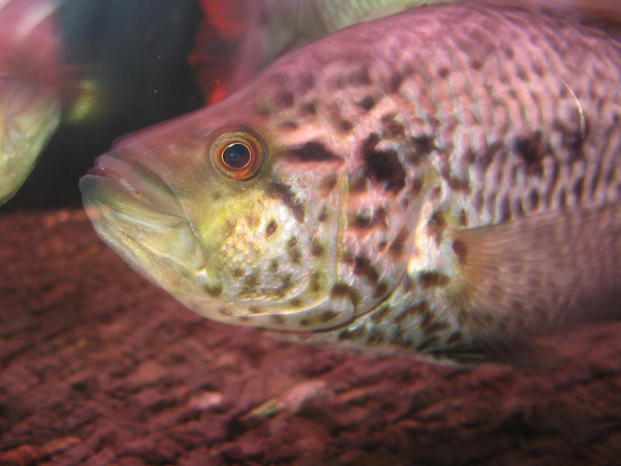 Другие языки: Dow's Cichlid, Dovii, Wolf cichlid, Rainbow bass, Guapote, Leopardenbuntbarsch.