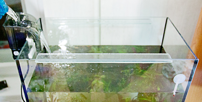Хотели поставить фильтр на заднюю стенку аквариума, но мешают ребра жесткости (срезать их не желательно, стекло - 3мм )