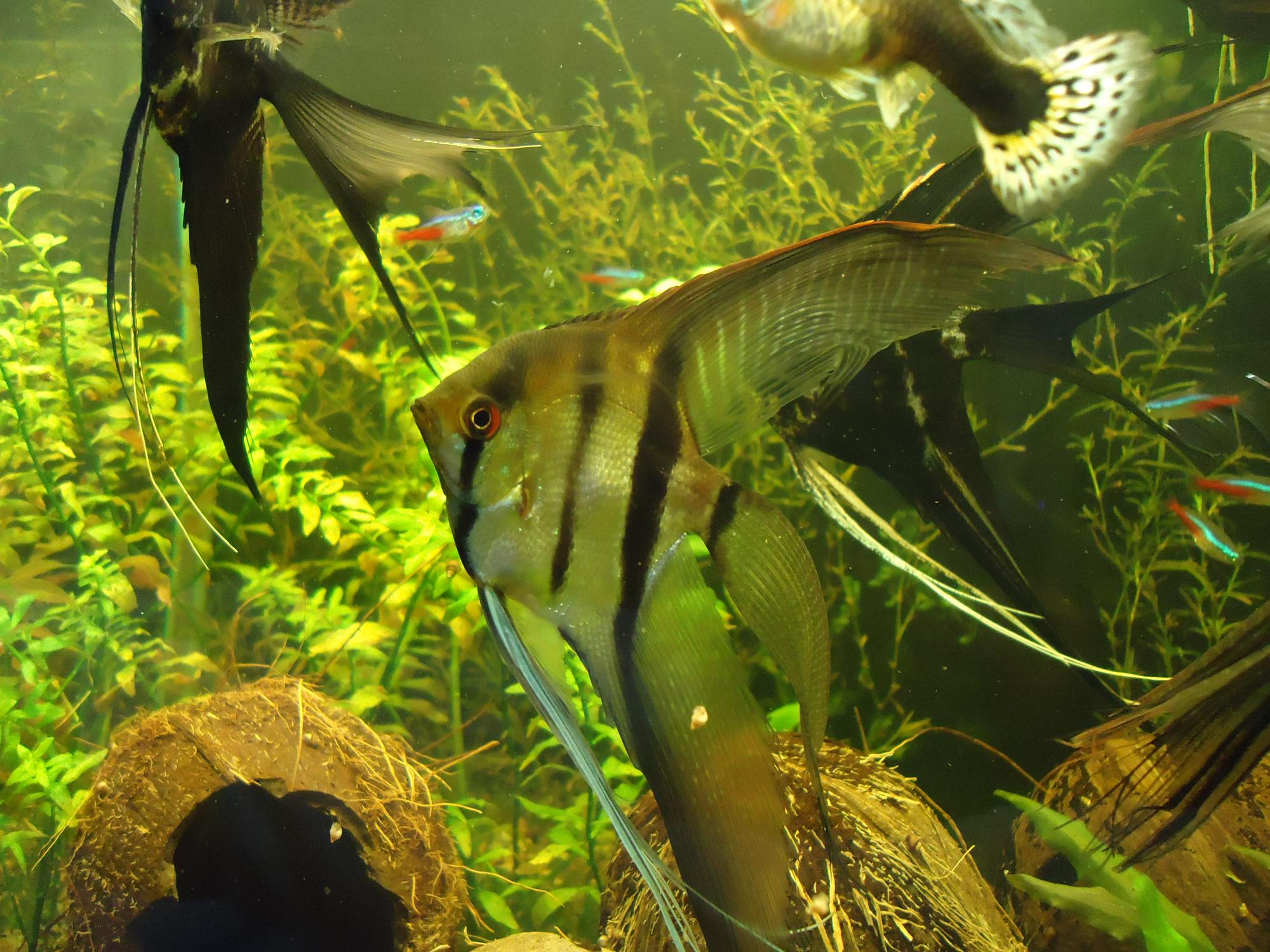 Добрый день, у меня живут 4 скалярии, им почти год, возможно уже видно кто из них кто? Подскажите пожалуйста