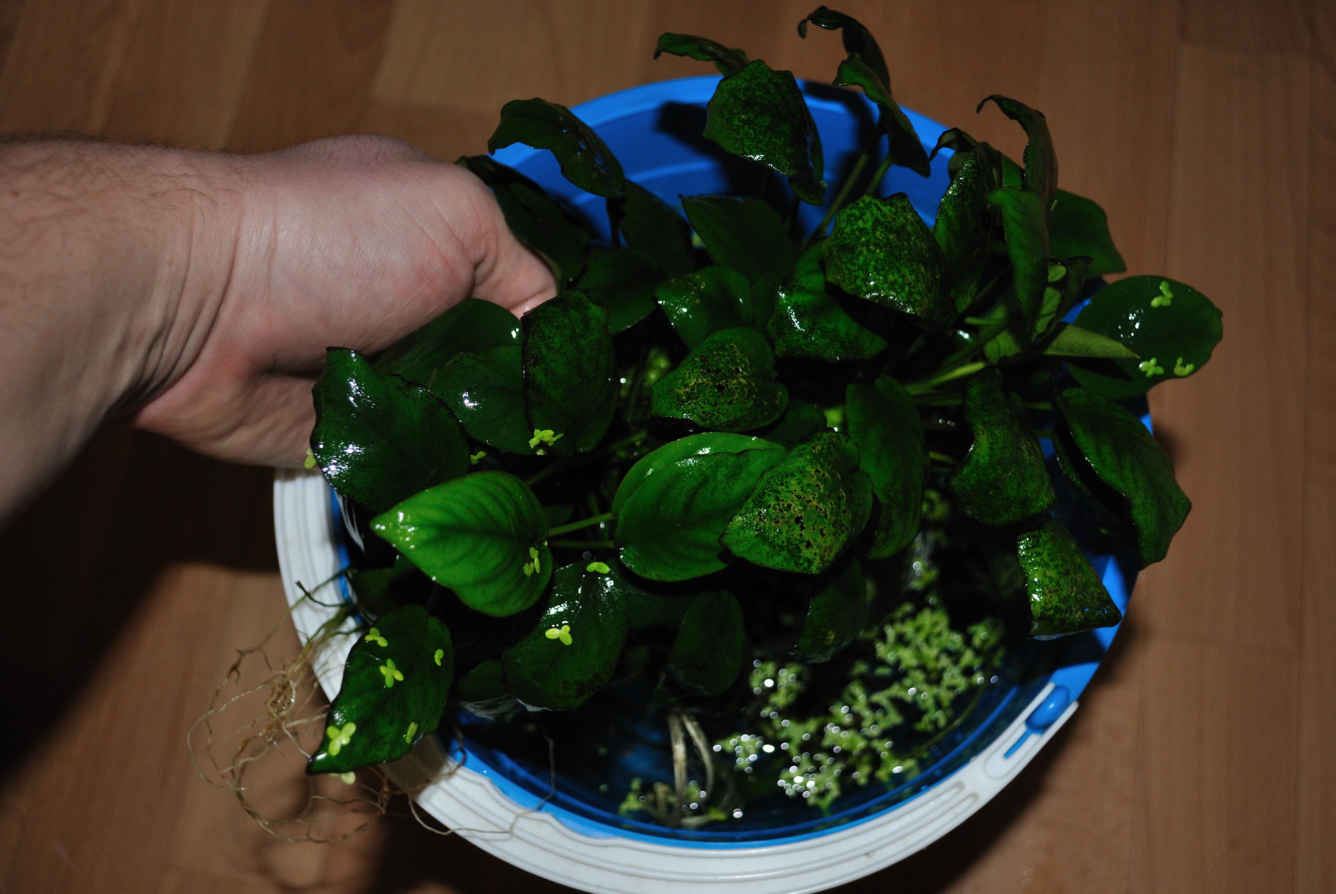 Отдам за 2л яблочного сока: Большой куст анубиаса побитый водорослями, веточка гигрофилы, ротала индийская, +ряска, пистия.
