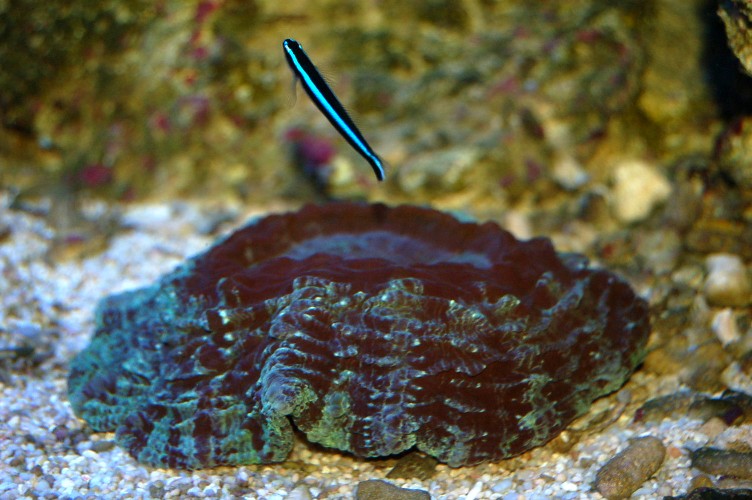 Ну насчет 20 литров как-то сомнительно для такой рыбы, места то ей хватит, но она все равно растет не слишком мелкая, за счет чего поддерживать? Частые подмены разве что. Я бы подумал тогда лучше о бычках - гобиодоны хистрио либо желтые. Хистрио 2 шт. у меня живут в той же системе уже год. Сначала тоже в водорослевике, где были скучными, теперь в общем, что куда интереснее. Один поселился в длиннополиповом сарке - умора наблюдать, как он елозит между полипов и охраняет, не хуже клоунов. Второго стал видеть реже, прячется между камнями. Еще обалденный бычок -гобиозома оцеанопс, тоже бы всячески рекомендовал. К сожалению, своего потерял, когда разбирал камни, был где-то в дыре. Очень живая рыбка и несмотря на размер, очень привлекает внимание. Тоже тяготеет сидеть на грибах и кораллах, чистит рыбу и ко всему прочему американцы их разводят. Хотя сложно сказать, насколько интересным он будет в маленьком объеме, но в общем аквариуме весьма! Пара старых фот.