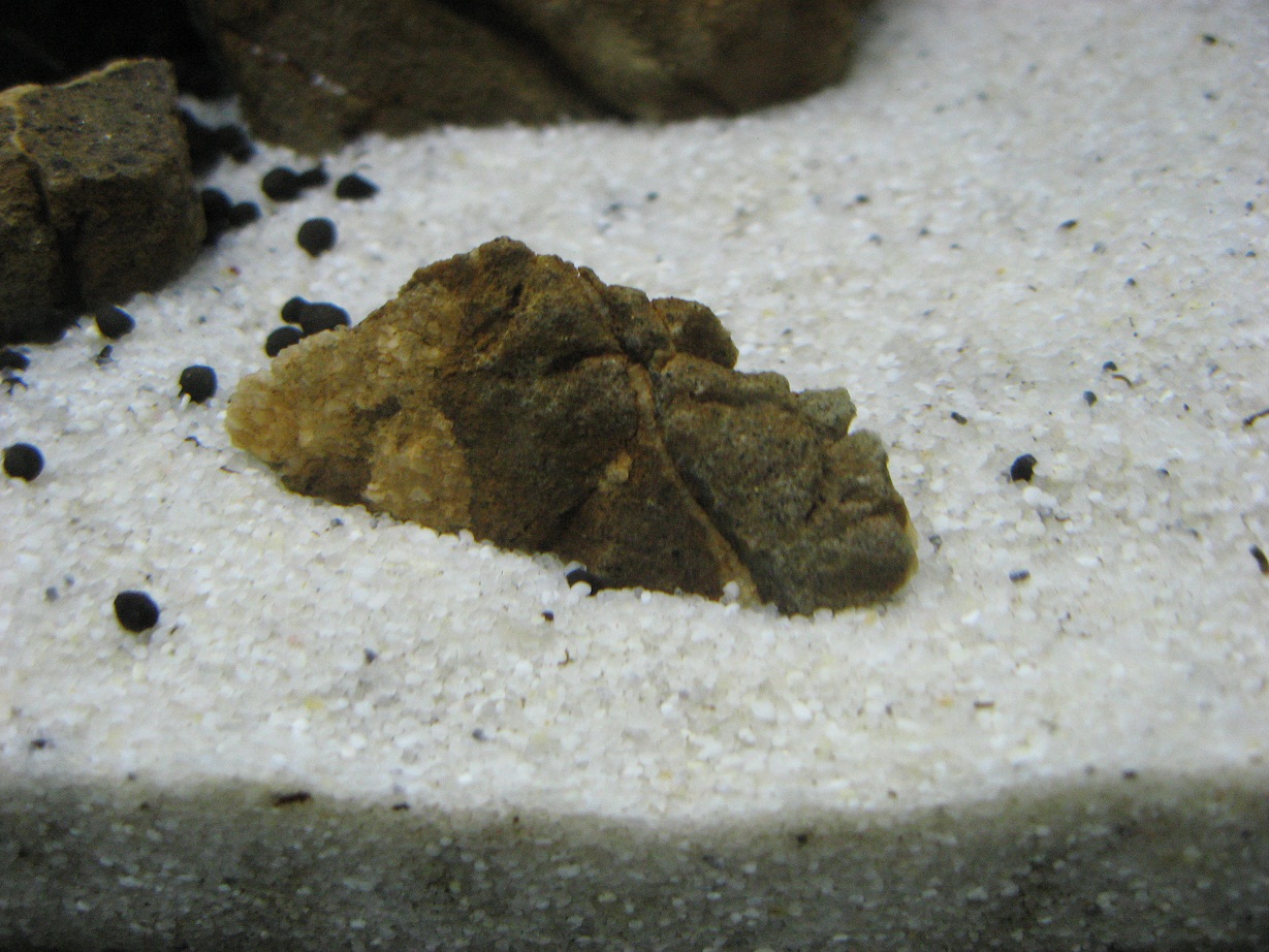Грунт-арагонитовый песок и кварцевый песок.Под корни Tetra Initial Sticks.