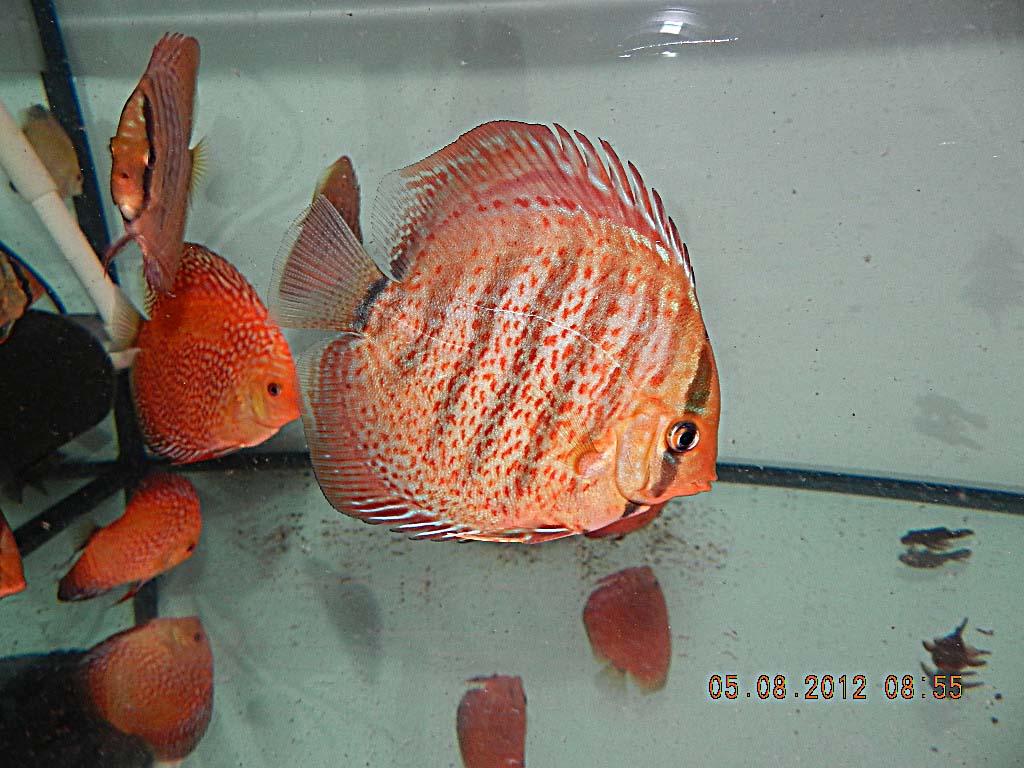 Немножко от себя-)))) Хотелось бы понять как можно назвать рыбку слева. Получена она от "детей " Михаила Антоновича и голдена из Азовдискуса (хочу сразу сказать, КРАСИТЕЛЯ не нюхала воспитывал для себя-))). А ейный муж Даунито из Италии. Со своей девушкой у него не получалось личика сыпалась....(((( Ну а на нашу "хохлушку" итальянкий мачо(или чмо ) запал-))) Каковы будут детки посмотрим-)))) Качество фото увы ... Интресует мнение Всех , что может получиться???Высказывемся с моей стороны НИКАКИХ обид-)) Извините самец пиджен змей-)))