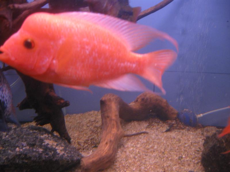 Вот мои рыбы переехали в новый дом, один из не линявших, наконец заканчивает это дело), начали обхаживать друг друга, хотя недавно, если не поставить перегородку просто убивали друг друга, теперь вместе роют под камнем ямку)