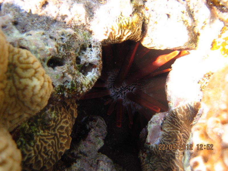 Я встретил три разновидности, но в основном живут диадемы, иногда колониями (фото 1).