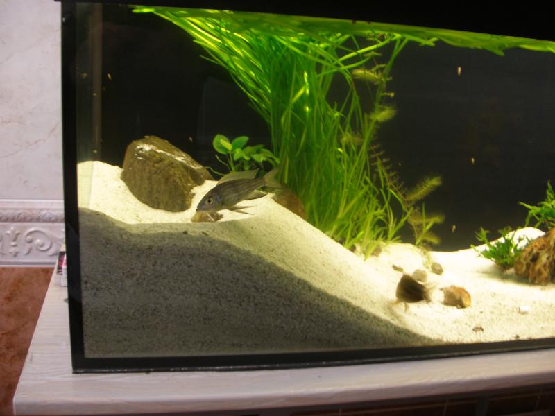 Сегодня сделал лёгкий редизайн аквариума,задачей которого было воссоздать приблизительно место обитания Гнатохромисов в дикой природе-на границе камней и песчаной зоны.