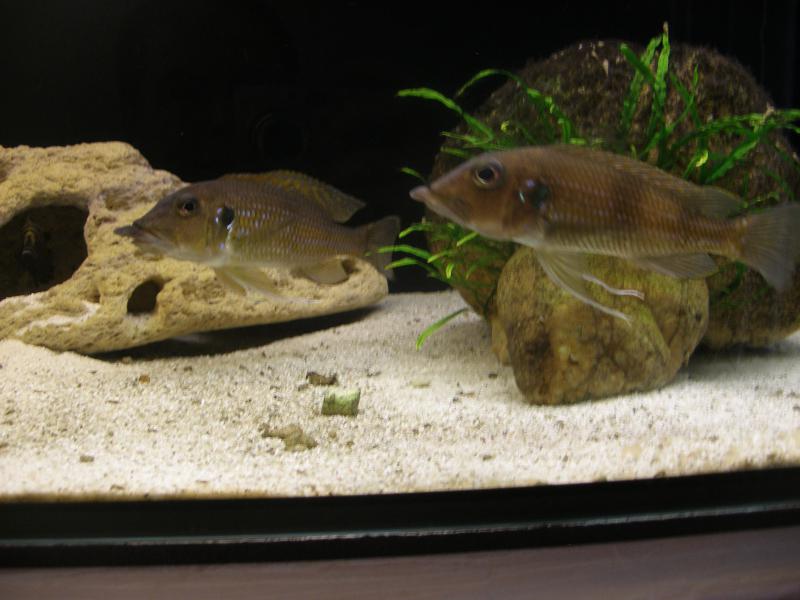 Пришлось мне расстаться с Алунокранусами.Рыба очень активная и немножко "придавила" своим поведением Гнатохромисов.Пришлось выбирать "или-или".Выбор пал на первых так как мне удалось их развести а вот Гнатохромисы остаются пока недосягаемыми в плане нерестов,но ничего,будем стараться.Свежие фотки Гнатохромисов которые снова почувствовали себя хозяевами аквариума.