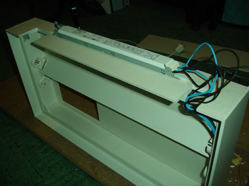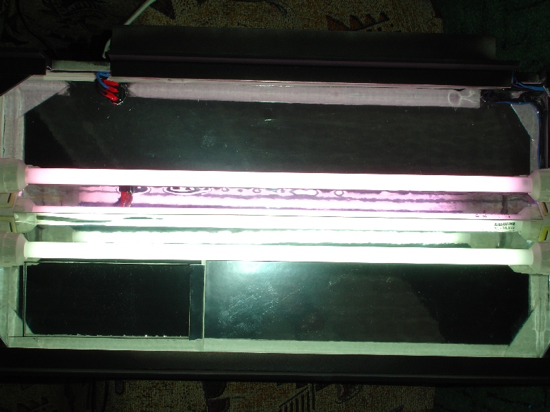 Предлагаю пару фоток на тему самостоятельного стряпания крышки для аквы 80 литров. Скажу сразу, это первый опыт, нигде не видел как делают но по примеру других "самоделок" сделал и я в свою акву. Ничего сложного нет, сначала разметку сделал на полу с помощью нескольких бумажных полосок, своего рода "лекало" или "образец". После подгонки макетика я принялся резать уже приготовленных материал. (Вспененный ПВХ) для рекламы. Нарезав заготовок, склеил их спец. клеем. Готовый каркас покрасил краской для автобамперов. Она немного при высыхании становится на ощупь шероховатой (в этом прикол особый). После полного высыхания и проветривания я ее подверг термической обработке, направил на крышку приближенный прожектор и горячим лучем света выпаливал остатки химического смердящего состава. Затем крышку обклеил зеркальной пленочкой и получилась отличная крышечка несущая на себе балласт и две лампы. Балласт вынес на наружу, так как греется. Вобщем все есть на фото. На первом этапе использования ..пару рыбок отошло в мир иной! Потом все утряслось и выветрилось. Уже пару лет - полет нормальный!