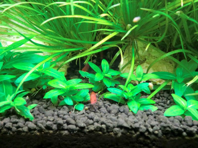 Что касается самой баночки, то она пережила 2-х недельное голодание без УДО! Плюс как и обещал было добавлено Хемиантус Микродермоитес и убрано пару кустов Блинсы Японики.