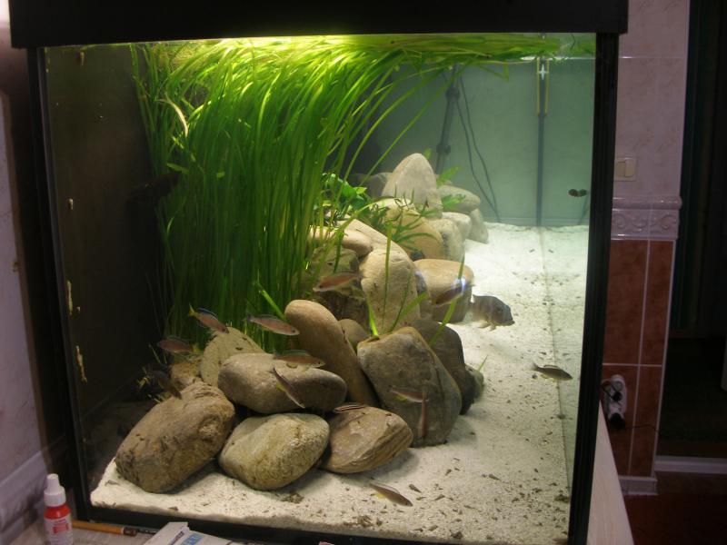 Всех с Новым Годом и с наступающим Рождеством Христовым!Дабы расшевелить наш раздел выставляю фото нового НЕправильного оформления моего аквариума под Танганьику.Это временное офрмление,поэтому для разнообразия сойдёт.
