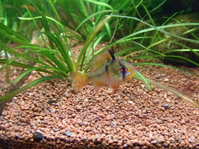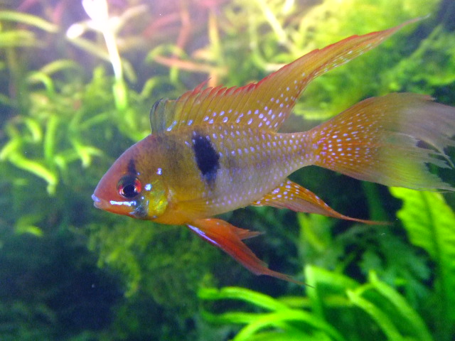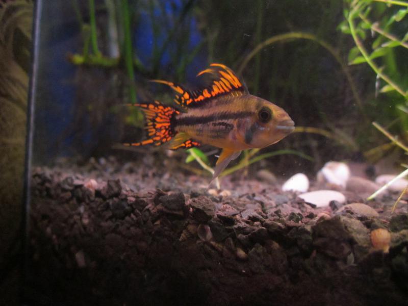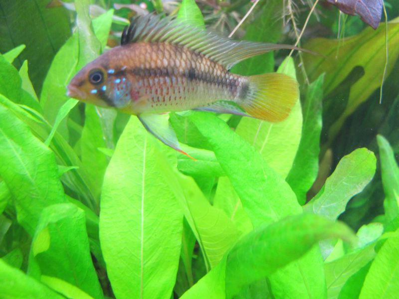 поддерживаю ksw1 - это апистограмма крузи , довольно интересная по окрасу рыбка(радикально меняет цвет от освещения--- может только у меня ?)