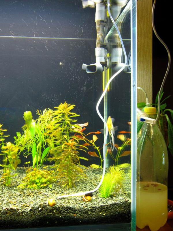 И вообще зачем СО2? Кому? У вас растений столько нет, ч.б. им углекислоту дуть. Оставьте аквариум в покое минимум на месяц. ИМХО.