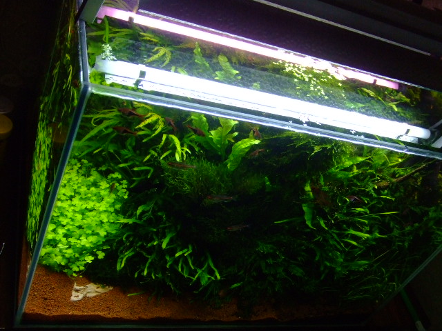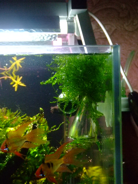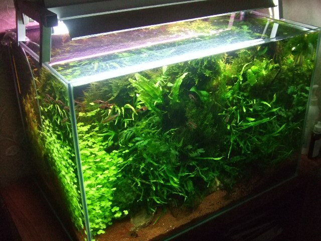 Исключительно импровизация.Мне всегда нравились "Голландцы".В акве две коряги Мопани ,что ли.Оснавная масса папороти крепится к камешкам .Я могу их извлекать для" ТО",могу менять дизайн.Вообще выбор растений продиктован наличием свободного времени.Хотел дольше сохранить композицию,меньше перекапывать.