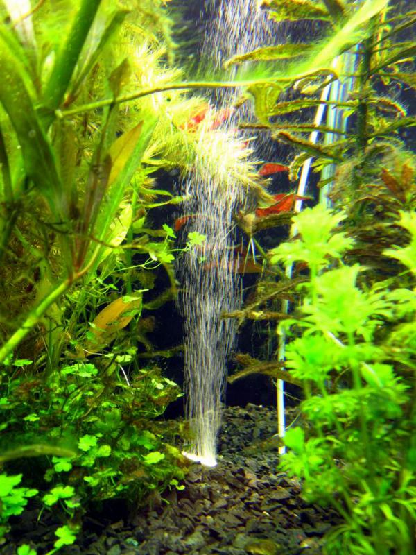 Вы же понимаете, чем тоньше веточка тем мельче пузыри! У меня веточка толщиной как карандаш, пробовал толще-не то, Со2 не успевает раствориться пока подымается толщей воды!
